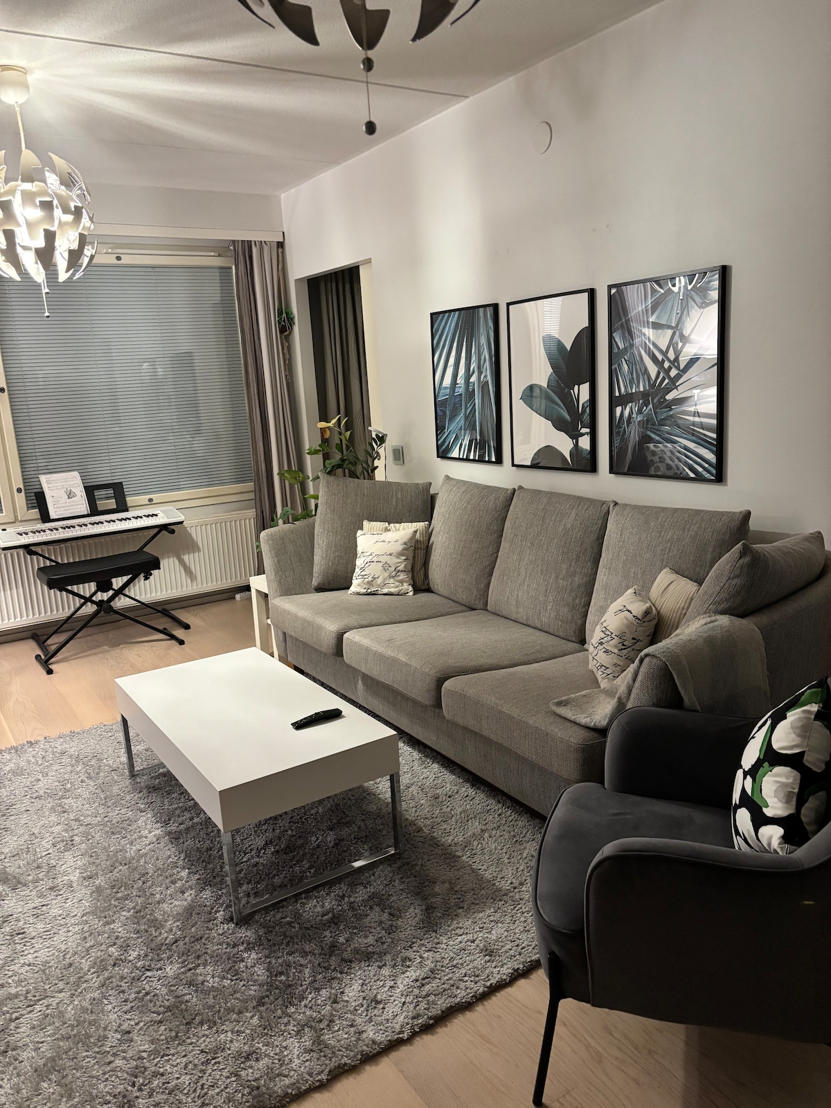 Ласкаво просимо до нашого красиво оформленого помешкання в скандинавському стилі з приватною сауною! Розташована на вершині величезного торгового центру Tripla, наша простора квартира (59,5 кв. м) 1 BR є ідеальною базою для вашого перебування в Гельсінкі. Розташування - легко дістатися з будь-якого місця (поїзд, автобус, трамвай) - Поїзд займає 5 хвилин до центру міста та 22 хвилини до аеропорту. - Доступна платна парковка, запитайте подробиці. - Цілодобовий великий супермаркет внизу.