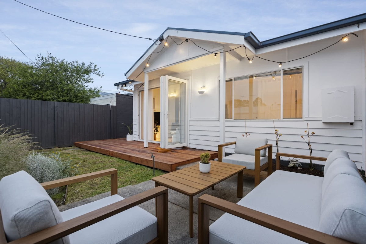 A private coastal cottage, ideal for summer. Only 4mins to the sea and 7mins to the springs, it’s tucked away enough to feel secluded yet close to it all. Relax amongst the tea trees. Enjoy the spacious deck, a BBQ and fully-fenced yard. Inside: a well-equipped kitchen, relaxed living area, luxurious beds and a strong, hot shower to wash off the salt and sand. Unwind in peace, but still be moments from beaches, wineries and restaurants. Swim, explore or settle in the garden. Yours to enjoy.