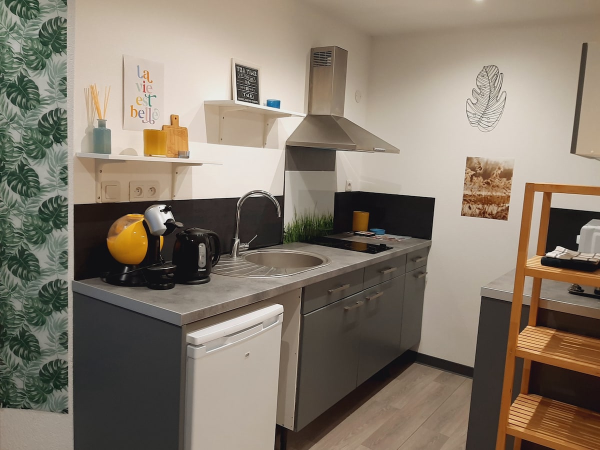 Уся чарівність цієї квартири - її простота і спокійна атмосфера. Ви знайдете дві кімнати на першому поверсі, добре обладнану кухню - вітальню, спальню з двоспальним ліжком і душову кімнату. У вас буде тераса та сад. Ідеально підходить для відвідування Saline Royale d 'Arc et Senans (об' єкт Всесвітньої спадщини ЮНЕСКО).