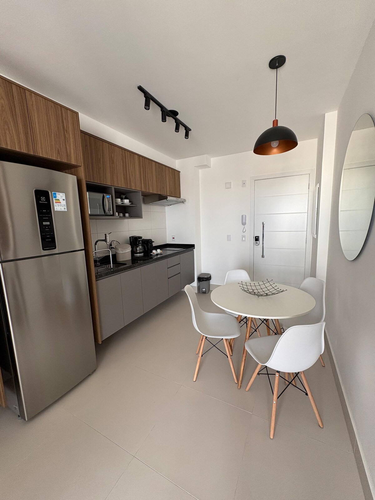 Alto padrão! Excelente localização! Completo: Wi-Fi, ar-cond, blackout, cozinha equipada (frigobar gde, cooktop, purificador de água, omeleteira, cafeteira, sanduicheira, microondas, etc); espaço p/ trabalho, roupa cama/banho, vaporizador p/ roupas, depósito, berço/cercado. Estacionamento 1 veículo (cabe cabine dupla). Acomoda 4 pessoas: 1 cama de casal; 1 sofá cama. Iluminado e arejado! Piscina, lavanderia c/ secadora, academia, sauna, espaço co-working, churrasqueira. Portaria presencial 24hs!
