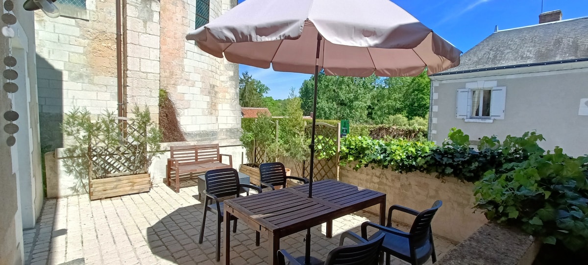 Окреме помешкання, обладнане зовнішньою коробкою для ключів Красивий повністю обладнаний будинок Tourangelle, тихо розташований в нашому помешканні в центрі Турен-Анджу. Книги, журнали, настільні ігри, Wi-Fi, а також дров 'яна піч. Чоловіки розташовані поблизу багатьох замків за 13 км від Ланжея, за 30 км від Сомюра та за 35 км від Тури. Озеро знаходиться в 2 км від заміського будинку, ідеально підходить для пікніків, плавання та їзди на велосипеді , ви також знайдете гінгет та водні ігри.