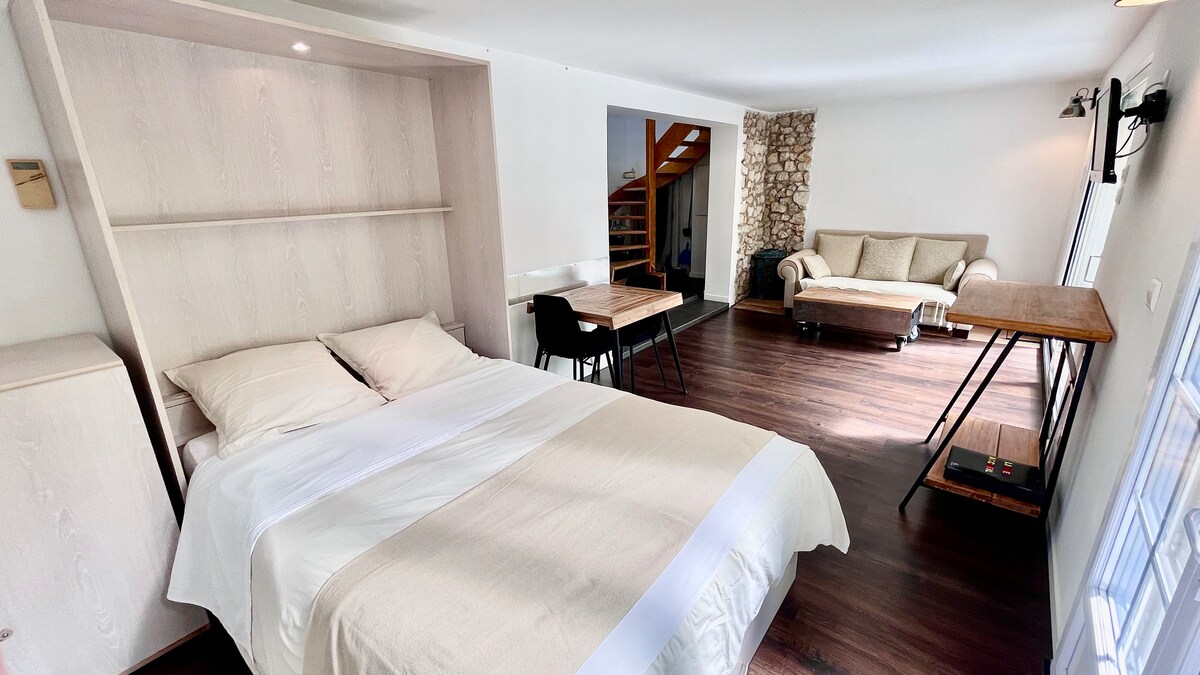 На півдорозі від Ніцци та Монако, в пішохідному середньовічному селі Езе, чарівний люкс у невеликому будинку XVI століття з терасою на даху з видом на середземноморське море . Вітальня та гостина з каміном на першому рівні, потім спальня та напіввідкрита ванна кімната з освітленою ванною та душем. Магічне та романтичне помешкання прямо посеред старого села Езе, відомого своїми ручними ремеслами, своїми художніми галереями, ресторанами та екзотичним садом на вершині. Дивовижний вид !!!