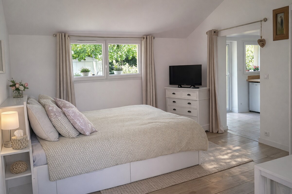 Studio cosy, accueillant et confortable à la décoration soignée. Situé dans un village à 6km au sud est de Tours et au calme. Idéal pour accéder facilement aux châteaux de la Loire. Parfait pour un couple ou une personne seule. Parking privatif, jardin et entrée indépendante rendent ce logement particulièrement pratique et agréable rénové en 2025. Terrasse particulière. Accès à la piscine et au SPA. Terrain de pétanque. Tennis de table