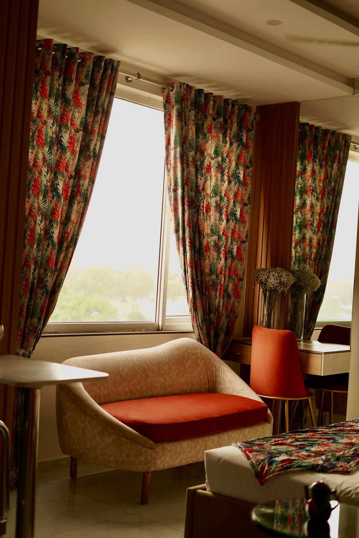 Ласкаво просимо до Daró — дизайнерської квартири-бутику з 1 спальнею в центрі Замін Аурум, Галберг III. Це помешкання, продумано оформлене в м’яких тонах, з сучасними меблями та спокійною атмосферою, як у готелі, пропонує приватний балкон, стильну вітальню з 55-дюймовим LED-телевізором, повністю обладнану міні-кухню, швидкий Wi-Fi, свіжу постільну білизну та гарячу воду 24/7. Ідеально підходить для подружніх пар, бізнес-мандрівників, відпочинку на вихідні та довгострокових перебувань, коли ви шукаєте комфорт, зручність і справді високий рівень обслуговування в Лахорі. 🌙✨