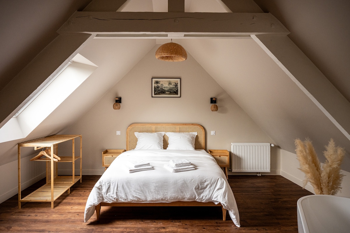 Цей зруб із обгорілої деревини, розташований у центрі молодого саду, пропонує рідкісний досвід, поєднуючи архітектуру та природу. Чисті об’єми, висококласне оздоблення, вражаючий 3-метровий скляний душ із ефектом водоспаду та відкритий вид на ландшафт до заходу сонця. Затишна тераса, скандинавська ванна та мангал доповнюють це місце, спроєктоване як справжній люкс у самому серці природи.