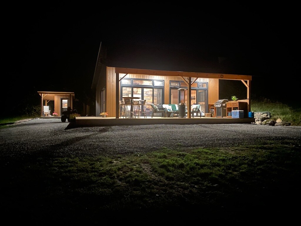 Юрта в приватній лісовій зоні. У пішій доступності сирний завод (морозиво, обіди, закуски), продуктові лавки та парк. Коротка поїздка до Мадока (продуктові магазини, пиво/LCBO, парки, пляж, пекарня, ресторани тощо). Ідеальне місце для спостереження за зірками, довгих прогулянок і велопрогулянок. Ця юрта знаходиться в кемпінгу, з компостним туалетом у приміщенні, сезонним приватним душем на відкритому повітрі, без Wi-Fi, але є електрика, посуд, плита в приміщенні, барбекю, міні-холодильник, всі каструлі та сковорідки, а також постіль та чиста питна вода.
