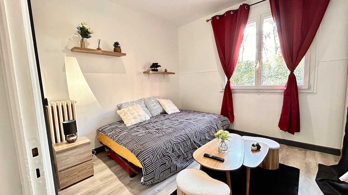 Приходьте і насолоджуйтеся спокоєм Екс-ле-Бен у цьому досить відремонтованому помешканні T2. Вона розташована на перших висотах Екс-ле-Бен, має унікальне розташування з прекрасним краєвидом. Тиша, але в 5 хвилинах їзди від центру та залізничного вокзалу. На першому поверсі повністю обладнана кухня, вітальня з диваном-ліжком. Телевізор з Netflix, Disney + та Amazon Prime. На верхньому поверсі одна спальня, одна ванна кімната з душовою та пральною машиною. Безкоштовний паркінг