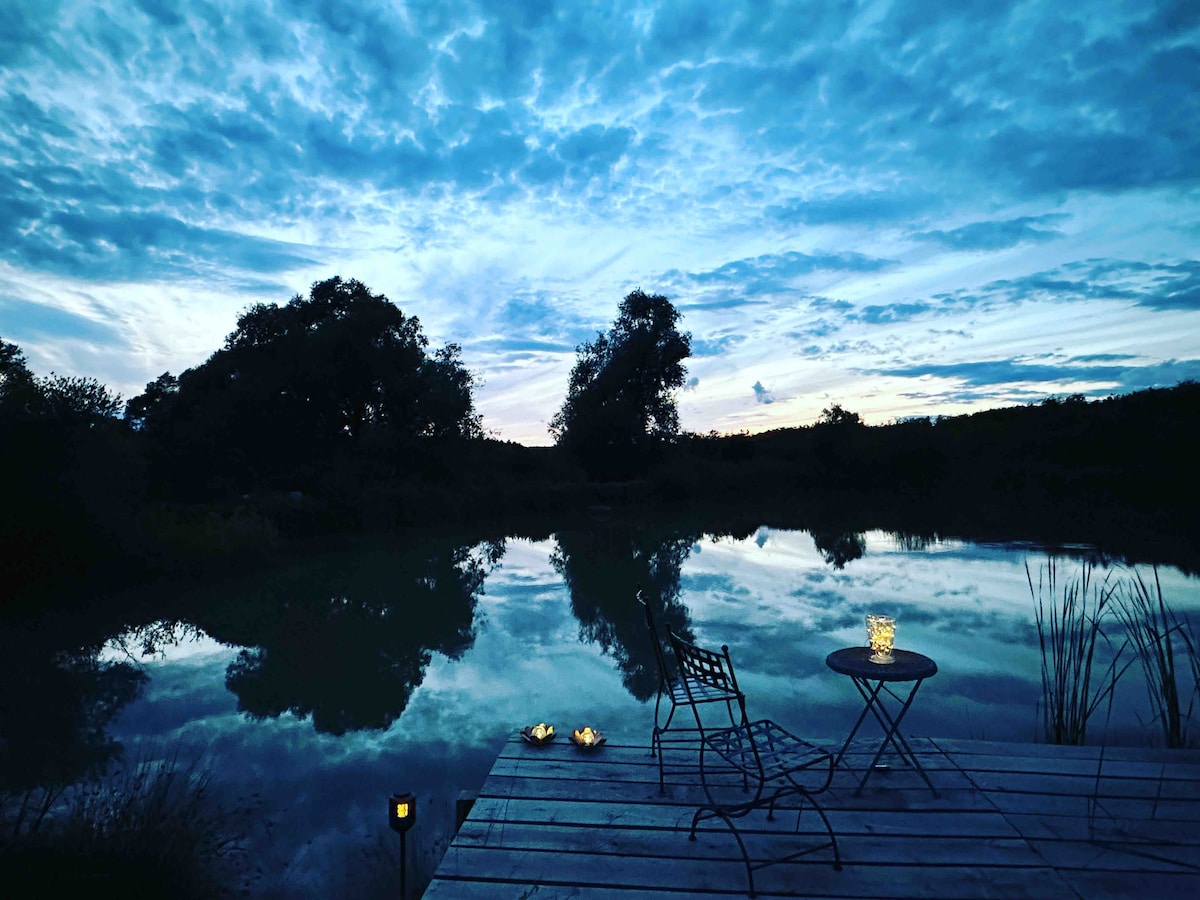 Відпочиньте та відпочиньте в цьому тихому оазисі з 70 приватних ареалів, посеред якого знаходиться цей чарівний маленький будиночок, що складається з 2 спалень із двоспальним ліжком кожна, підвісного туалету, ванної кімнати з душем, обладнаної кухні, телевізійної вітальні з WI-FI , дизайнерського каміна, тераси з видом на приватний ставок, відкритої оздоровчої зони зі скандинавською ванною та сучасної сауни. Крита планча для барбекю та прикріплений корт для петанку з видом на лісовий парк.