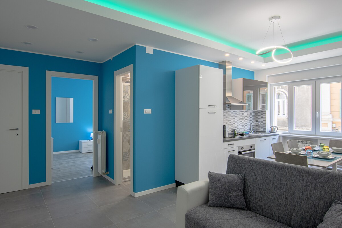 Простора, затишна та тиха квартира, дуже близько до залізничного вокзалу та автостоянки. За декілька метрів від усіх зручностей, супермаркетів, барів і автобусних зупинок до Мірамаре, Сан-Джусто, карстового плато. До пішохідної зони центру міста, площі П 'яцца та берегів можна дістатися пішки за 15 хвилин. Подається як ліфт, він включає велику вітальню з кухнею та двома диванами-ліжками, двоспальну спальню, ще одну спальню з двоспальним ліжком, ванну кімнату. Він може вмістити до 6 осіб.