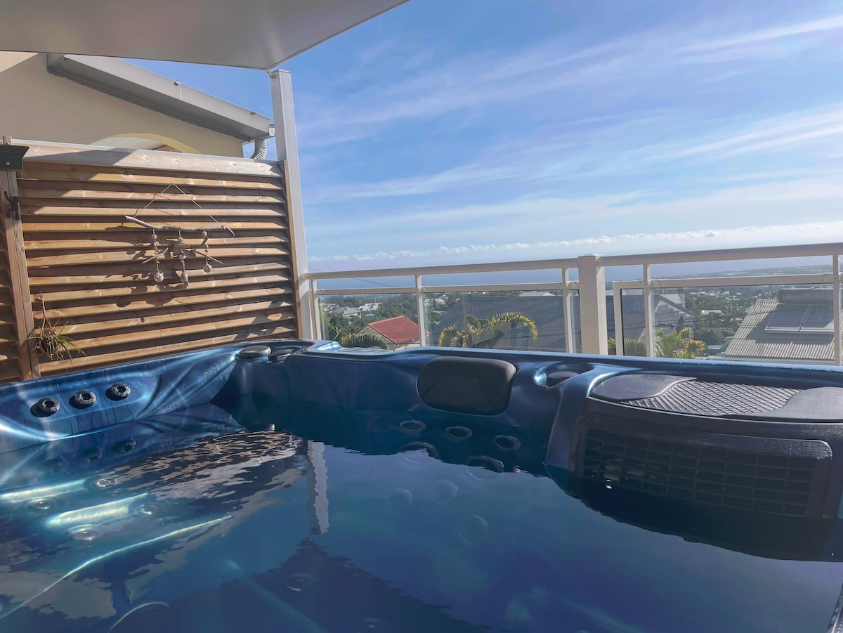 Повністю обладнана сучасна вілла з джакузі/міні-басейном 2,70 м х 2,70 м, 2 спальні з двоспальним ліжком 160x200, включаючи індивідуальну ванну, обладнану кондиціонером, шафою для зберігання речей і телевізором. Комфортна ванна кімната з душовою кабіною, сучасним туалетом. Вітальня обладнана кріслом, телевізором та обіднім столом. Розташована в тихому місці, в 10 хвилинах від Сен-П 'єра та пляжу з приватним джакузі лише для вашого помешкання, парковка.