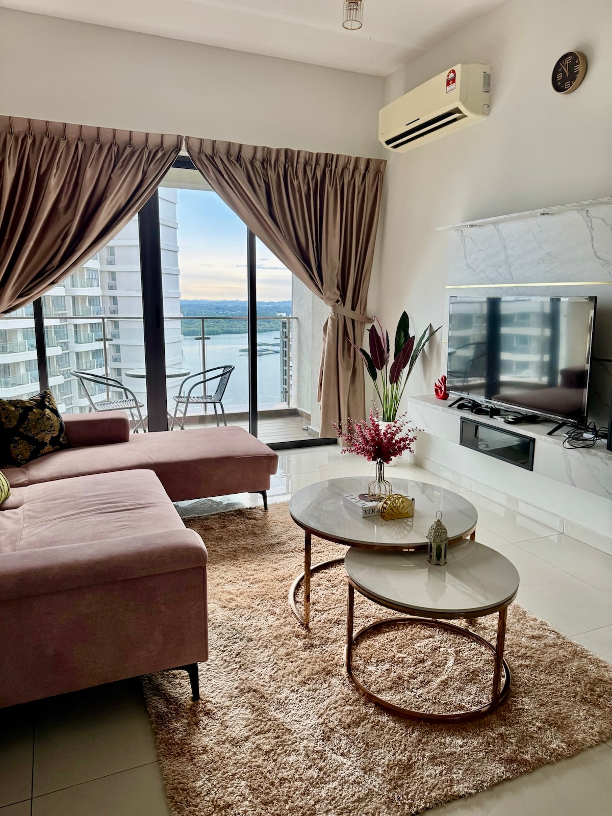 Гості можуть вибрати ЗМІНИТИ ПРАВИЛА для повернення коштів під час бронювання Ласкаво просимо до ідеального місця для відпочинку в Джохор-Бару! Ця стильна квартира з 3 спальнями та 3 ванними кімнатами з видом на море вміщує до 8 гостей і продумано оформлена для романтичного відпочинку, сімейних зборів або групових поїздок.