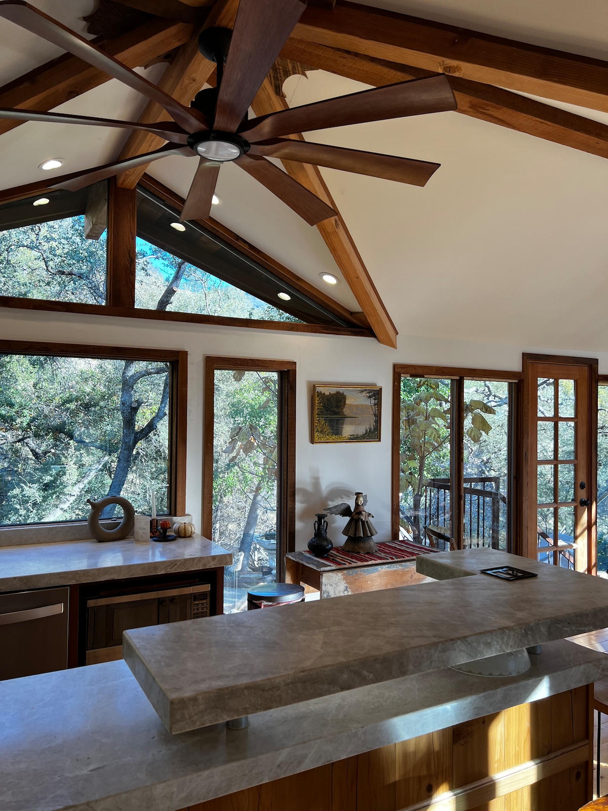Nothing more stunning than spring time rivers, a romantic, private & large guest studio w its own entrances, private terraces w towering ceilings, & King bed in historical craftsman on the South Fork of the Kaweah River in charming 3 Rivers,. Launch to Sequoia Natl. Park, Gen Sherman & Grant Grove, Kings Canyon Nat’l Park & Mineral King. Come enjoy the trees, trails, & beauty of a Natl’ treasure! Lake Kaweah, the foothill rivers and moments to town. Book your stay @ Crystal Cave far in advance!