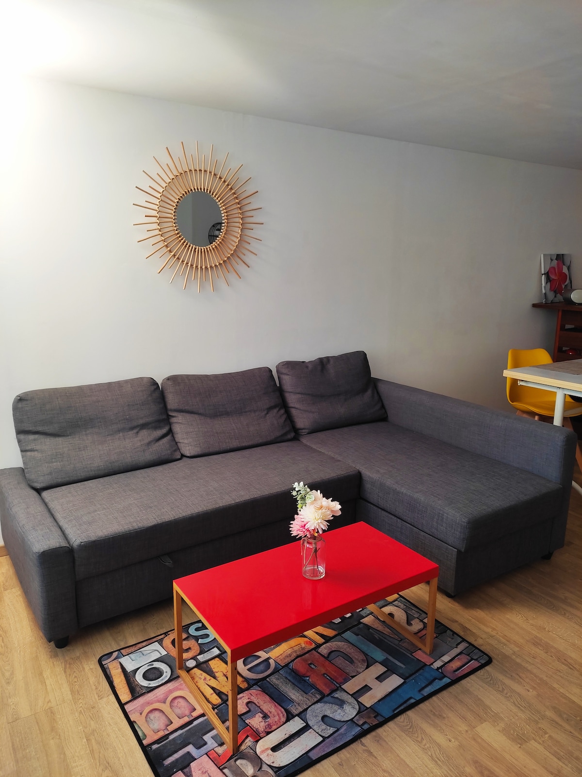 Studio lumineux entièrement refait à neuf ! ☀️ Logement à deux pas de la gare, proche de l'hyper-centre et de toutes les commodités. Immeuble avec ascenseur, calme, récemment rénové et totalement sécurisé. Entièrement équipé : lit queen size, machine à laver, lave vaisselle, machine à café, four, bouilloire, grille pain, sèche cheveux, fer à repasser, ...