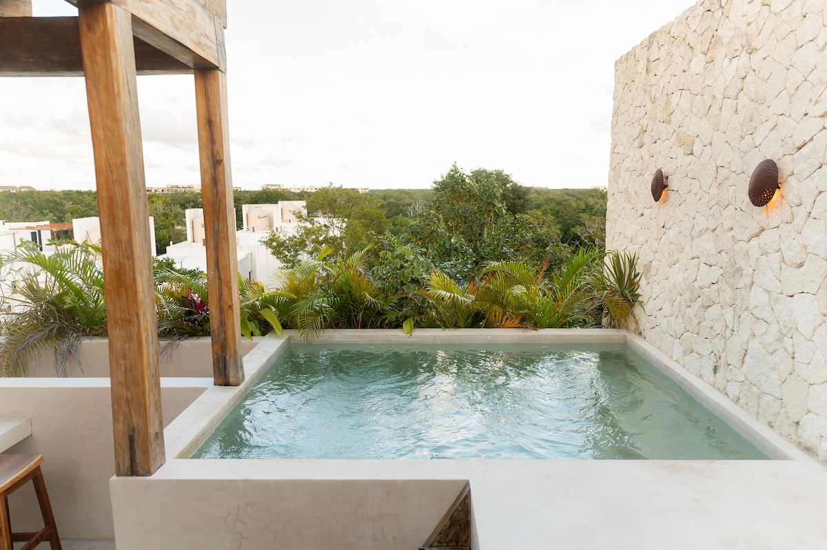 Ласкаво просимо до нашого нового пентхаусу Sori en Jungle Paradise, Тулум. Тут ви зможете насолодитися безкоштовним доступом до ексклюзивного пляжного клубу AKNA та комфортом власного приватного басейну на терасі. Затишне й елегантне помешкання, оточене природними деталями, де поєднуються спокій і дизайн, щоб відчути суть Карибського басейну.