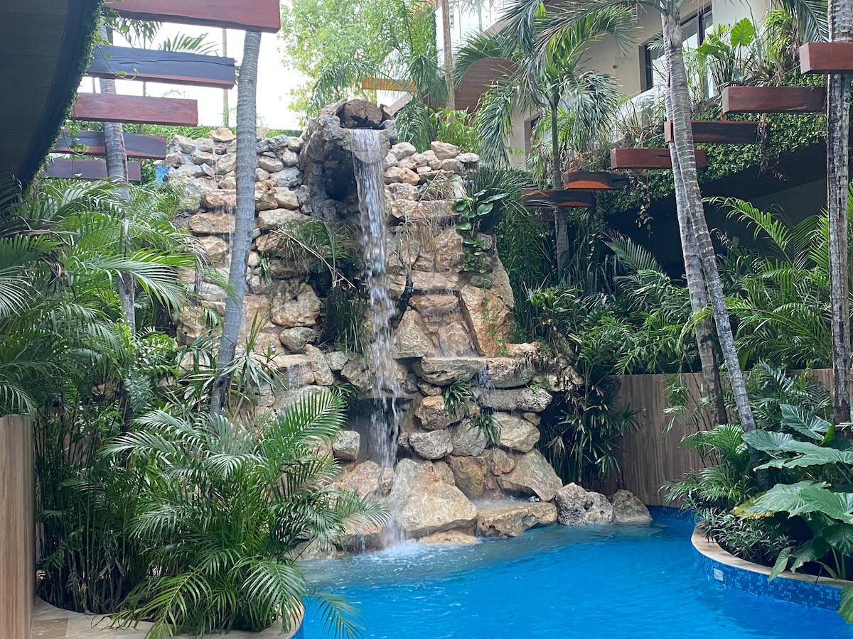 Нова та сучасна нерухомість розташована всього в 7 хвилинах від пляжу та в декількох хвилинах ходьби від найкращих ресторанів, магазинів та великого супермаркету. Усе необхідне для чудового відпочинку. 2 безкоштовних велосипеда, швидкий Інтернет, ліжко King Size, кондиціонер, міні-кухня, TV-Netflix; і доступ до неймовірних зон спільного користування (штучний сенот, джакузі, басейн). Навіть ваш власний приватний басейн і все інше, що може знадобитися для відпочинку вашої мрії.