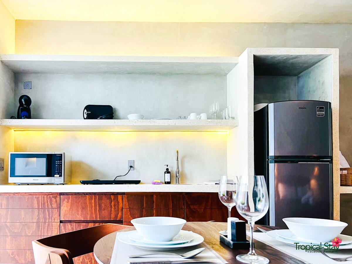 Розумний мандрівник повинен шукати не більше, ніж цю приголомшливу квартиру для своєї наступної втечі в Тулум. Стильне та сучасне помешкання з оновленим розкішним оздобленням, помешкання на третьому поверсі має 1 спальню та 1 ванну кімнату, в ньому можна перебувати з домашніми тваринами і зручно розмістити до 4 гостей. Це помешкання розташоване в чарівному й унікальному середовищі, побудованому над природним сенотом, має всі зручності, необхідні для відпочинку, але безтурботного перебування з дивовижним краєвидом, проживанням у приміщенні/на відкритому повітрі та доступом до кожної розкішної зручності спільноти.