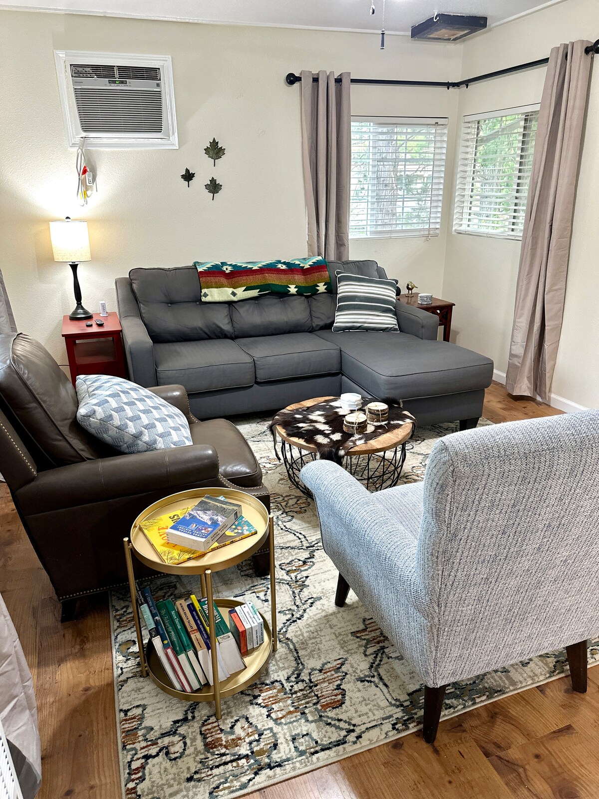 Спокійна та сучасна студія з лофтом, розташована за 90 хвилин від Йосеміті, з приватним садовим патіном та станцією зарядки електромобілів, у районі Футхілл. Вибачте, але ми не можемо приймати їх із собою. Помешкання чисте, тихе, студія з кухнею, ліжком розміру «queen-size», диваном-футоном, ванною кімнатою з тропічним душем і спальним лофтом. Тут є розкішні кидки, постільна білизна та рушники. Ми - сім 'я ЛГБТ. Ми говоримо іспанською мовою, багато подорожуємо та живемо за кордон. Ми вітаємо вас у нашому мирному відпочинку!