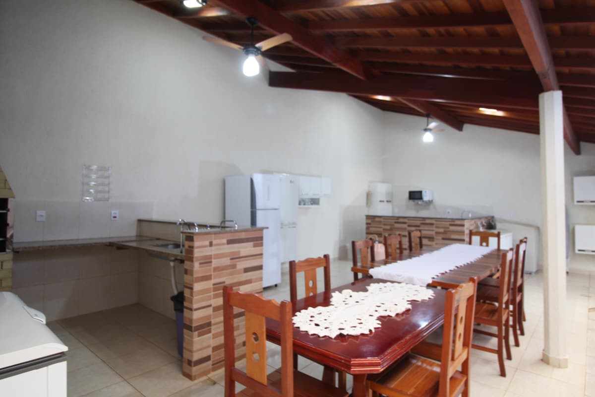 Я називаю своє помешкання як притулок друзів, і всім тут раді! Райське місце на березі водосховища Ілья-Сольтейра в Ріо-Гранде! Дивіса штатів SP, MG і MS! Чудово підходить для сімей або груп людей! Тут є 3 шале, в яких комфортно можуть розміститися по 3 людини, і два апартаменти, які ідеально підходять для двох осіб. Пишна природа, вода та земля в межах (птахів і риб). Фантастичні заходи сонця, далеко на захід від штату Сан-Паулу! Риболовля доступна для розміщення окремо!