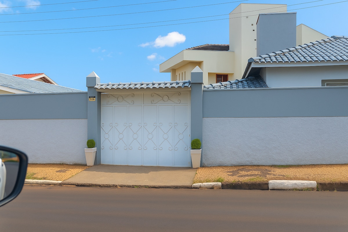 Будинок для відпочинку розташований у 5 хвилинах від аквапарку HotBeach та долини динозаврів і в 10 хвилинах від музею Cera та Thermas dos Laranjais, недалеко від пекарні, м 'ясної лавки, супермаркету, аптеки, закусочної, піцерії та ресторану, ваша сім' я буде недалеко від всього, зупинившись у цьому добре розташованому місці. Вона має 3 спальні, 2 ванні кімнати, вітальню, їдальню, обладнану кухню, зону відпочинку з барбекю та критий гараж на два автомобілі. Тут вітаються всі домашні тварини.