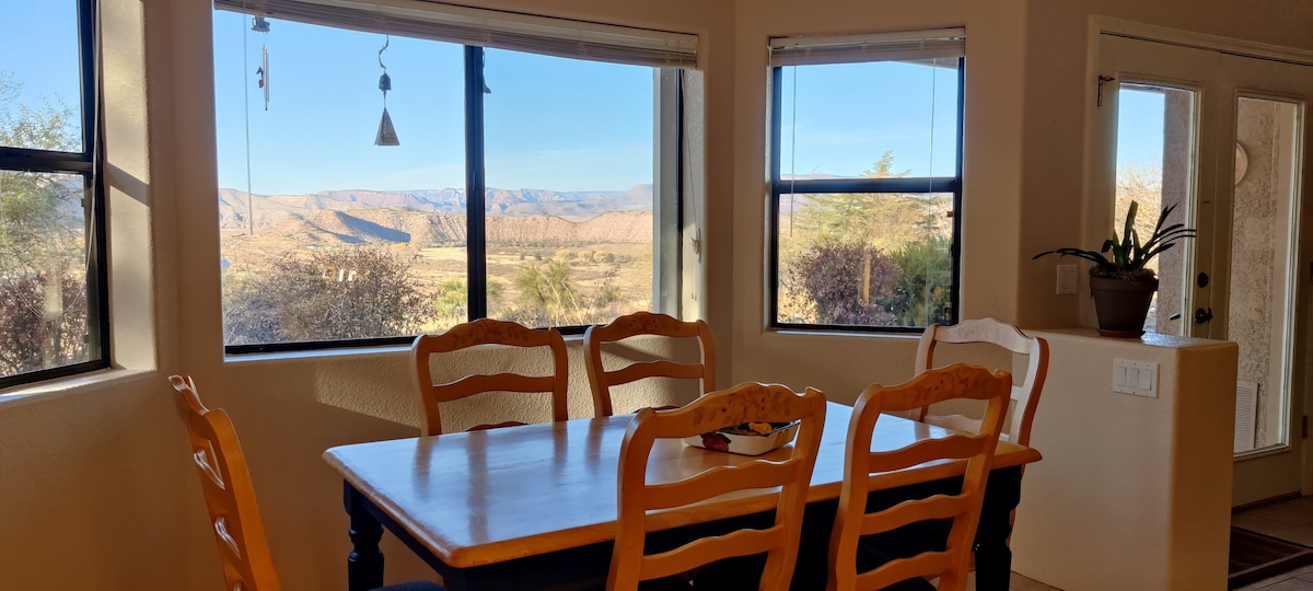 З південно-західного хребта відкривається вид на Седона Ред-Рокс, Сікамор-Каньйон і Верде-Рівер. Ідеальне місце, щоб насолодитися заходами сонця та споглядати зірки в патіо та відпочити у нас. Зручно розташований поблизу Старого міста Коттонвуд, Джерома та Седони. Близькість до численних пішохідних стежок, ресторанів і виноробень. Перш ніж бронювати, ознайомтеся з нашими Правилами дому. Ознайомтеся з інструкціями, зателефонуйте нам. Щоб здійснити бронювання, вам має бути не менше 18 років.