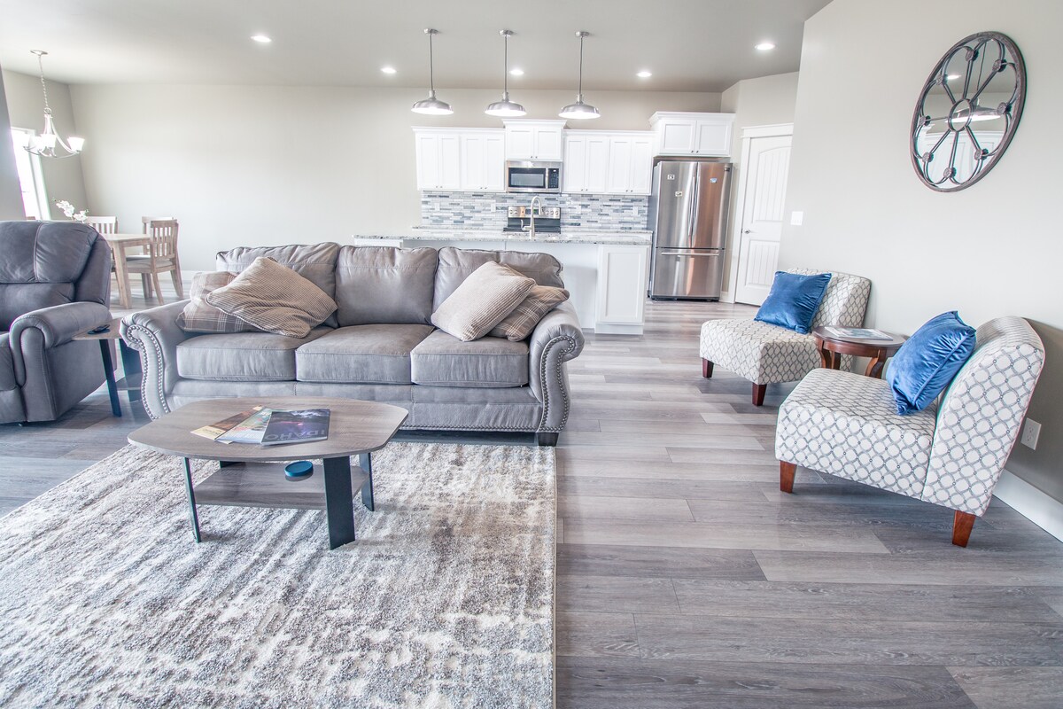 Яскраве та просторе помешкання з 3 спальнями та 2 ванними кімнатами у Твін-Фоллз, ідеально підходить для сімей, пар та відряджень. Дві окремі вітальні пропонують простір для відпочинку з секційними диванами та смарт-телевізорами. Готуйте з легкістю на повністю обладнаній кухні та добре висипайтеся в спальнях із двоспальними ліжками California King або Queen. Насолоджуйтеся огородженим двором і швидким доступом до центру міста. - Огороджений двір. - Дві вітальні та смарт-телевізори - Поруч із центром міста