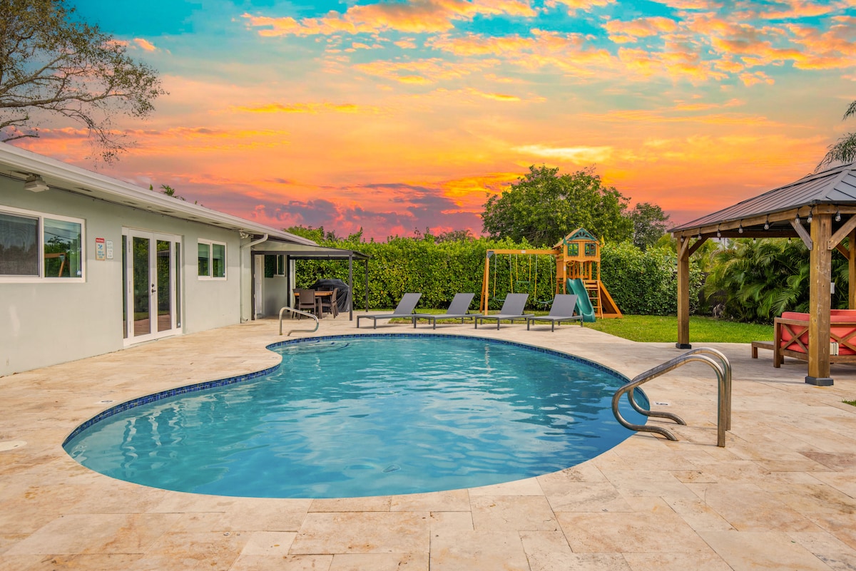 «Це наш другий рік у цьому місці, і нам це подобається Неподалік знаходяться громадські цілі, а також пляж!- Келлі, 24 березня Відкрийте для себе відпочинок своєї мрії на цій розкішній віллі з 4 спальнями та 3 ванними кімнатами, де просторий дизайн відкритого типу поєднується з природним освітленням і кухнею найвищого рівня. До послуг гостей басейн із підігрівом, індивідуальне освітлення, їдальня на свіжому повітрі та затишна зона відпочинку. ☆ Великий огороджений задній двір із альтанкою ☆ Голлівуд-Біч знаходиться в 15 хвилинах їзди Басейн ☆ із підігрівом на замовлення Готель і казино ☆ Hard Rock у 15 хвилинах їзди