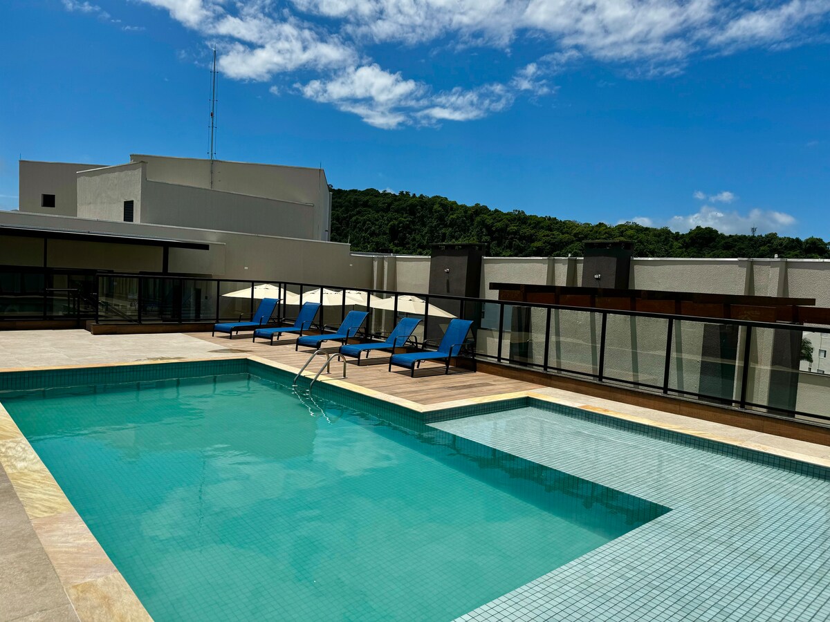 Нова/відремонтована квартира з дивовижним видом на море в найкращому місці Убатуби. Поруч із усім і водночас посеред природи. 1 спальня з двоспальним ліжком і видом на море Вбудована кімната з кухнею Басейн в кондомініумі. Кондиціонер Швидкий Wi-Fi (200 Мбіт/с) Гараж Стійка реєстрації 24/7 Вона знаходиться в Праінья-ду-Матараццо і в 5 хвилинах від пляжу Переке-Асу. Сучасний і з райським краєвидом. Оскільки ми знаходимося поруч із Café de La Musique, у вихідні дні може бути шумно.