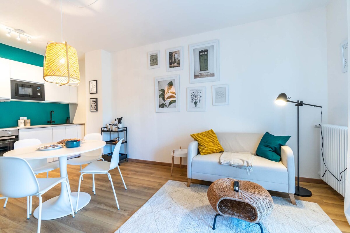 Pensato da viaggiatori, per viaggiatori. Appartamento ristrutturato 2023, luminoso e completamente accessoriato. Bilocale composto da un open space (sala e cucina), camera matrimoniale e bagno finestrato, completato da due balconi che affacciano sui tetti di Udine. Le principali caratteristiche sono: self check-in, smart tv 60", netflix, area lavoro, cucina con induzione, lavastoviglie, microonde, forno, lavasciuga, aria condizionata.