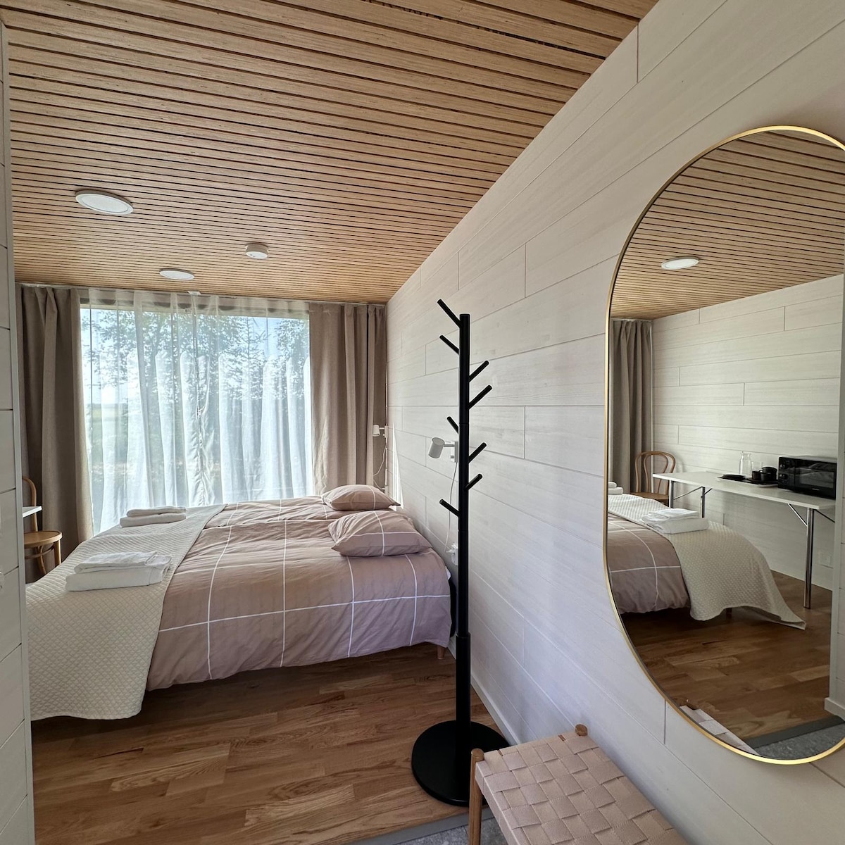 Студія в будівлі гаража. Міні-кухня з двома тарілками, холодильником(морозильною камерою), мікрохвильовою піччю, кавоваркою, електричним чайником та основним посудом. Постільна білизна та рушники надаються. Душ у унітазі, зверніть увагу на 30-літровий водонагрівач, гарячої води вистачає приблизно на 5 хвилин. Автомобіль можна заряджати або підігрівати від настінних розеток. Відсутня духовка та посудомийна машина. Миттєве бронювання, якщо ви можете забронювати, ви можете залишитися без моєї відповіді Розташування чудове в центрі. До 86-ї дороги 10 км, до 4-сторонньої дороги 50 км, до 8-ї дороги 50 км, до Гельсінкі - 530 км та Леві - 480 км.