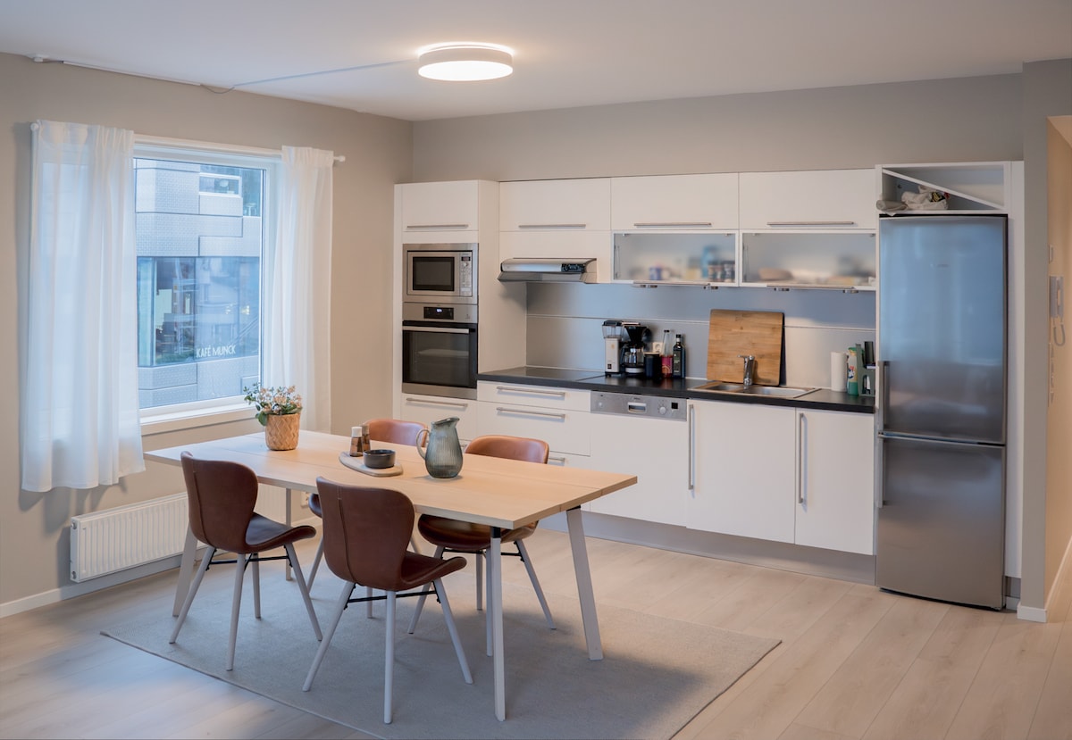 KG12 — це фантастична нерухомість в абсолютному центрі Берген-Сіті, з видом на прекрасне озеро «Лілле Лунгегардс». Квартира повністю обладнана двома основними спальнями з двоспальними ліжками та додатковим двоспальним ліжком у відкритому/ лофті над зоною вітальні. Квартира ідеально підходить для 6 гостей. Квартира повністю відремонтована та стильно мебльована. За 100 метрів від залізничного вокзалу та за 100 метрів від рибного ринку - він не стає більш міським, ніж це! Дуже високий стандарт - легке життя!