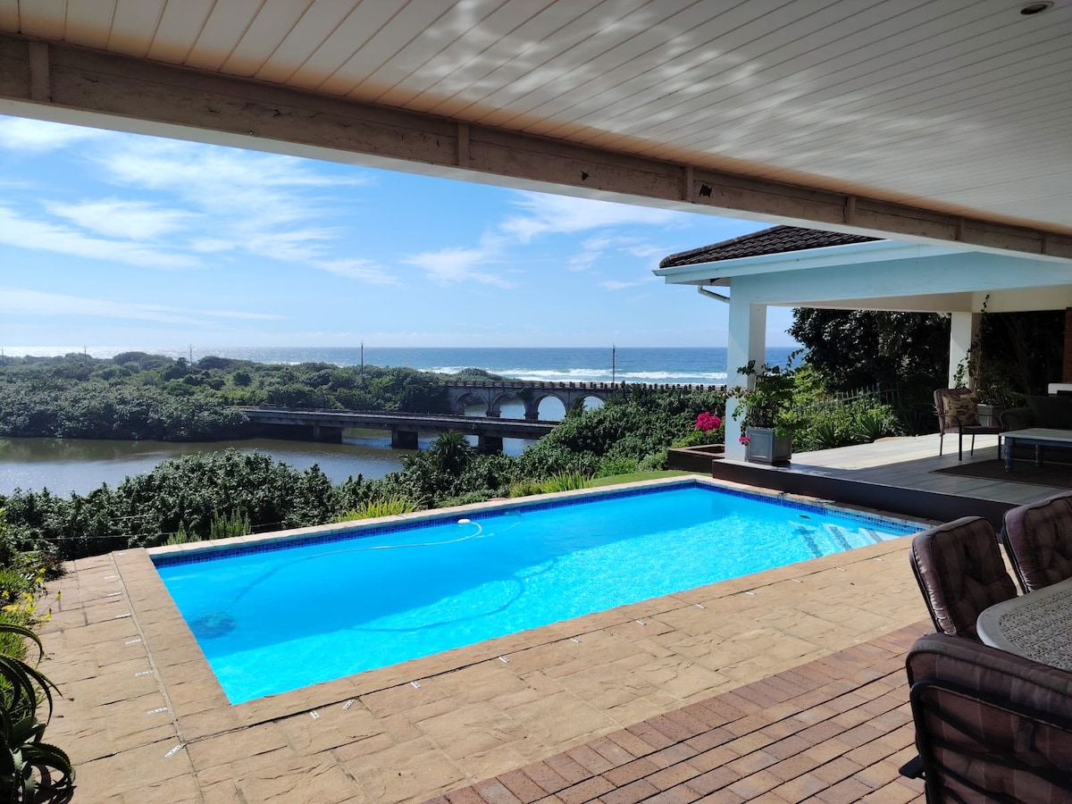 Ваш власний куточок спокійного раю. Відпочиньте на великій палубі з видом на Індійський океан прямо перед вами, де грають кити та дельфіни. Цей заміський будиночок з 1 спальнею з кондиціонером може похвалитися приватним видом на океан і короткою 80-метровою доріжкою до пляжу. Лаунж із 50-дюймовим плоским екраном і повним DSTV, повністю обладнана кухня з холодильником/морозильною камерою. Безкоштовне користування високошвидкісним оптоволоконним Wi-Fi. Резервний інверторний електропостачання Доступ до помешкання з безпечною приватною парковкою в хорошому районі вздовж Марін-драйв.
