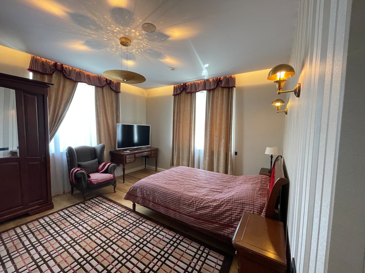 Experience tranquility in our RED ROOM located on the top floor of our boutique winery. From your window, you can enjoy beautiful panoramic views of vineyards, creating the perfect setting for slow mornings and peaceful evenings. The room features elegant furnishings and a private en-suite bathroom. Although the guest house may host other visitors, each guest has full privacy. Activities offered by our winery: • wine tastings • events • sauna, hamam, pool • breakfast (extra fee)