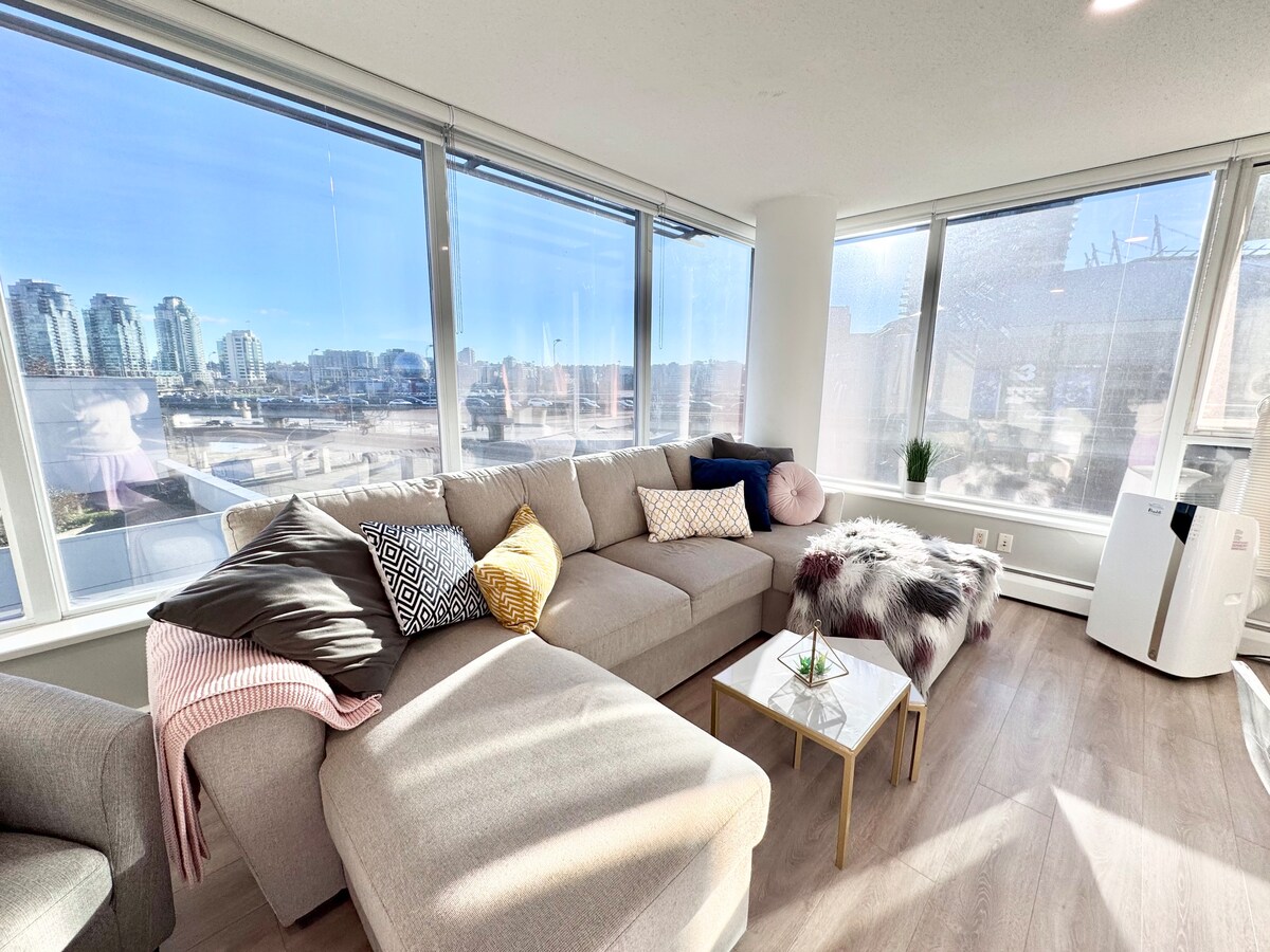 Yaletown 1BR з краєвидами, безкоштовним паркінгом і кондиціонером
