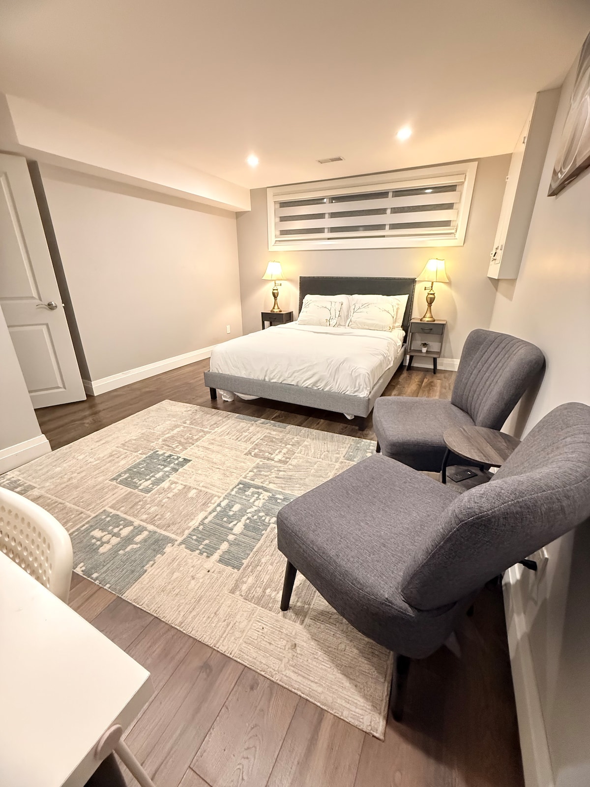 Затишний люкс на цокольному поверсі поблизу аеропорту Торонто Всього в 15 хвилинах від аеропорту Пірсон. У цій цокольній квартирі є 1 спальня, окрема ванна кімната, офісне приміщення зі стільцем для читання та обідня зона з кавоваркою. Безкоштовна парковка включена! Зручно розташоване в декількох хвилинах ходьби від супермаркетів, автобусних зупинок і ресторанів, а також всього в декількох хвилинах їзди від торгового центру Square One. Дістатися до центру Торонто можна за 35 хвилин (50-60 хвилин із рухом транспорту). Ідеально підходить для пар або бізнес-мандрівників!