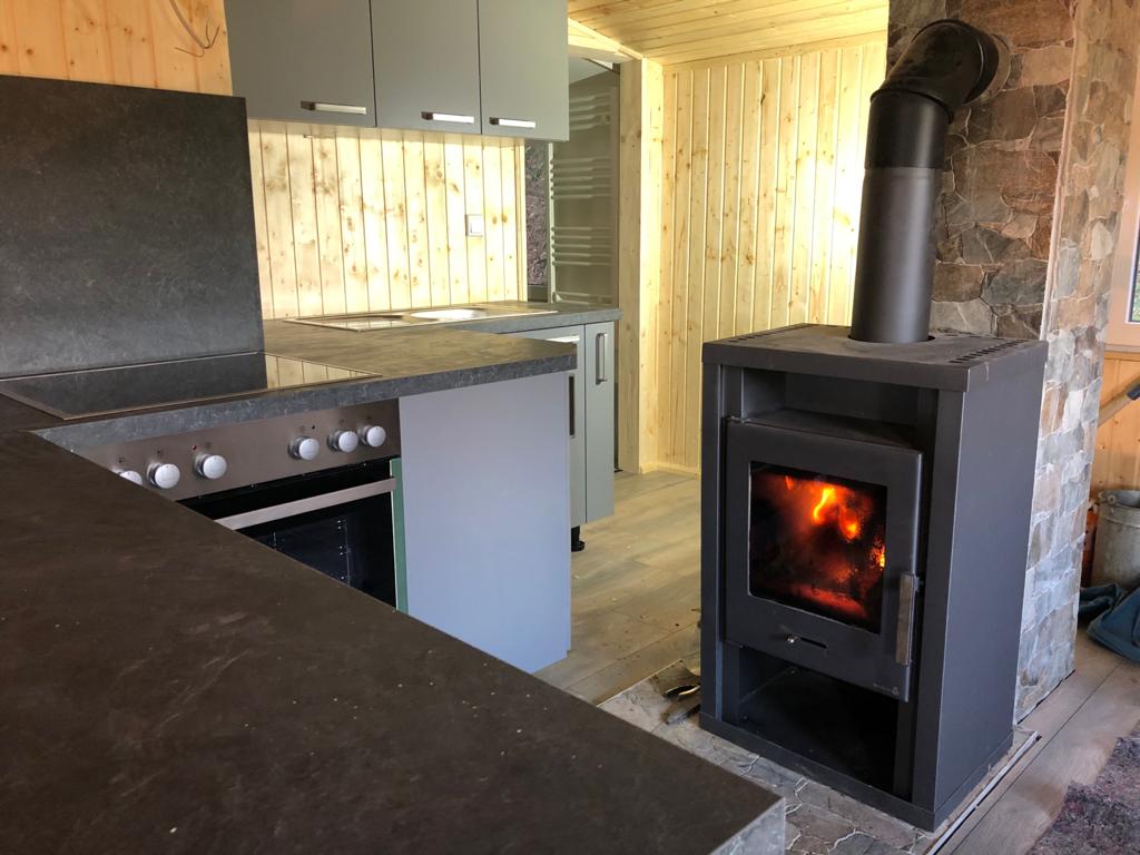 Квартира площею 30 кв. м у відремонтованому будинку на дві сім’ї Вхід Головна кімната: ліжко 1,60 м, диван (з функцією спання шириною 1,30 м), обідній стіл, спроектований як сервант Повністю обладнана кухня (преміальна техніка, кава, чай, питний шоколад безкоштовно) навпроти подвійного умивальника ліворуч від входу до відкритого дощового душу праворуч від унітаза (двері, що замикаються) головна кімната та туалет на роликах Переглядає всі вікна Транспортні засоби можна припаркувати безпосередньо перед помешканням (тупик)! Двір ще не відремонтований