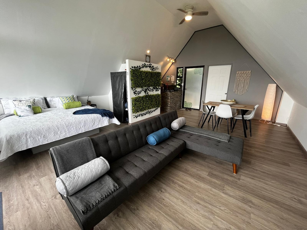 Arenal Love Cabin - ваш ідеальний романтичний відпочинок! Насолоджуйтеся захоплюючим видом на вулкан Ареналь і озеро, насолоджуючись приватним джакузі - це справді незабутні враження. Усередині ви знайдете зручне ліжко king-size, затишну зону відпочинку, кондиціонер, смарт-телевізор і залишаєтеся на зв 'язку з хорошим Wi-Fi. У ванній кімнаті є душ з гарячою водою, а кухонна зона обладнана міні-холодильником, кавоваркою, блендером, мікрохвильовою піччю та електричною сковорідкою. Створіть прекрасні спогади в цій чарівній оселі!