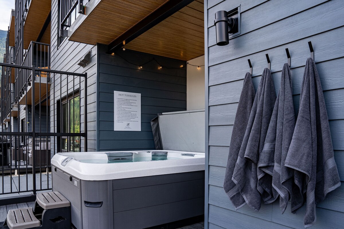 Your Modern Mountain Get-Away! Discover the ultimate base for your Revelstoke adventure in a place that caters to year-round fun. This charming condo boasts 2 bedrooms, 2 bathrooms, a BBQ, and full size hot tub. Nestled in the newly developed Mackenzie Plaza, relax in the open living area or soak in the hot tub on the deck after a day out. Enjoy the convenience of underground parking and central AC for year-round comfort. City of Revelstoke Business License: 5006 BC Registry Number: PM551105626