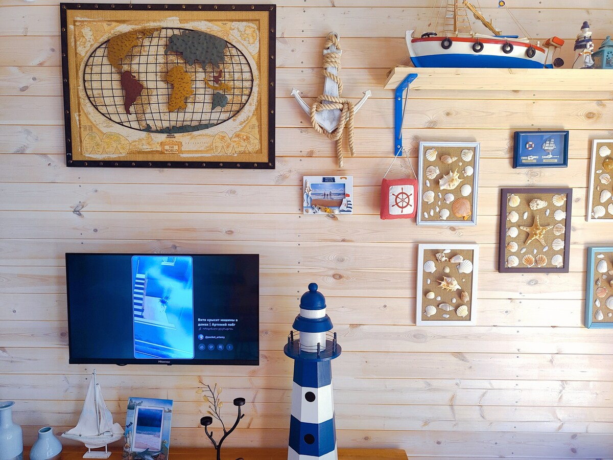 Eco-friendly wooden cottage with a wooden interior, large stained glass windows and a great courtyard where the natural landscape is preserved. The magnetic sand of the Black Sea coast is a real miracle of nature! It has been known since the 19th century. Of course, the healing and other unique properties of these sands were first tested by local residents. The sand, with the ability to cure various chronic diseases, is of great interest to physicians and researchers.
