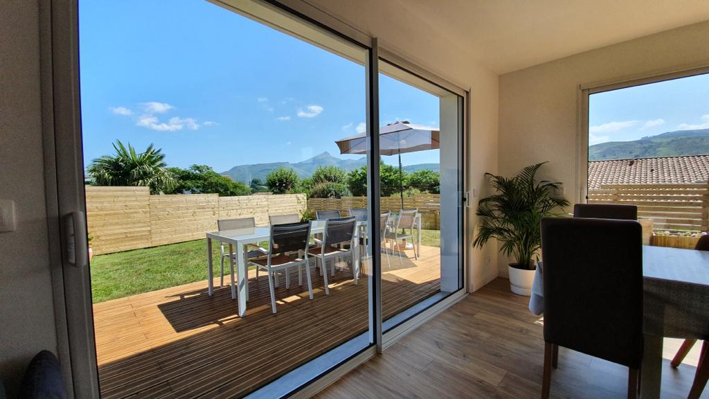 Улітку та в деякі вихідні я здаю свій будинок в оренду. Це нове помешкання площею 100 м² з кондиціонером у тихому районі з краєвидом на гору Рюн і гори. Велика вітальня площею 50 м²: Повністю обладнана кухня (індукційна плита / духова шафа / мікрохвильова піч / посудомийна машина) Їдальня на 8 осіб Вітальня з 50-дюймовим телевізором. 3 спальні, у 1 з яких є місце для розміщення людини на інвалідному візку. 2 ванні кімнати (одна з ванною, одна з душовою кабіною та туалетом) 1 окремий туалет Тераса з садовими меблями Wi-Fi Пральна машина