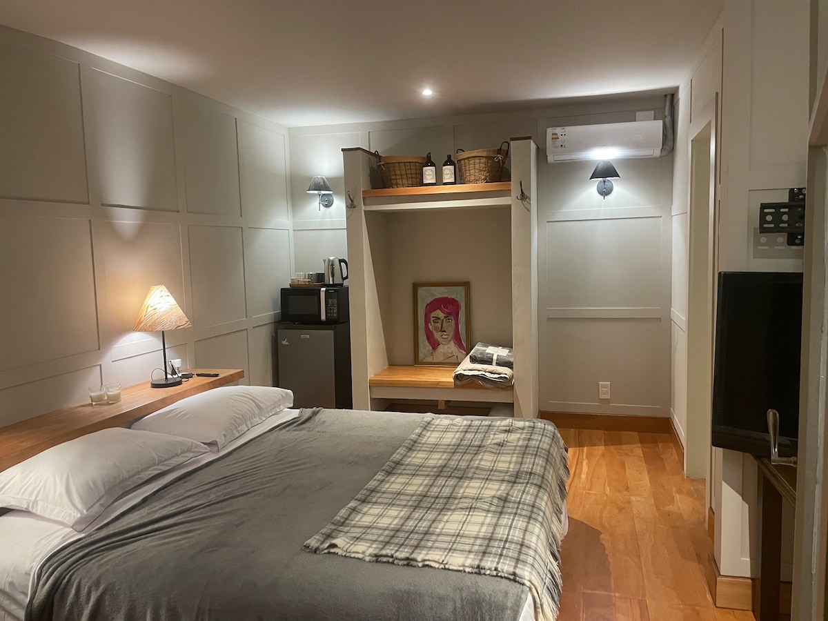 Located in Montevideo’s creative hub, the hotel hosts rotating art exhibits featuring local and international artists. This concept room with a queen bed blends minimalist design with thoughtful details. It’s perfect for travelers who want a stylish stay in a cultural setting.