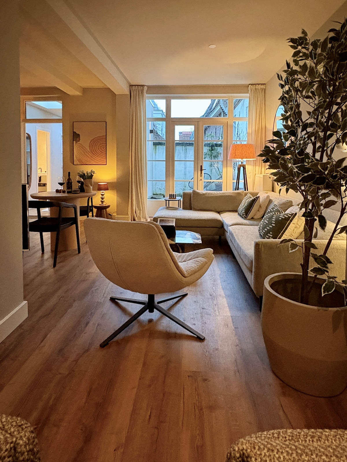 Ця квартира площею 60 кв. м ідеально підходить для пар, які подорожують Європою, це справжній дім далеко від дому. І це ідеальне місце для знайомства з містом Утрехт. Крім того, це також ідеальна квартира для пар на робочому відпочинку через два окремі робочі місця, 1 у спальні та 1 у вітальні. В обох приміщеннях є потужний сигнал Wi-Fi, що робить відеодзвінок можливим. Ця сучасна дизайнерська квартира в багатовіковому будинку (anno 1584) знаходиться в центрі Утрехта.