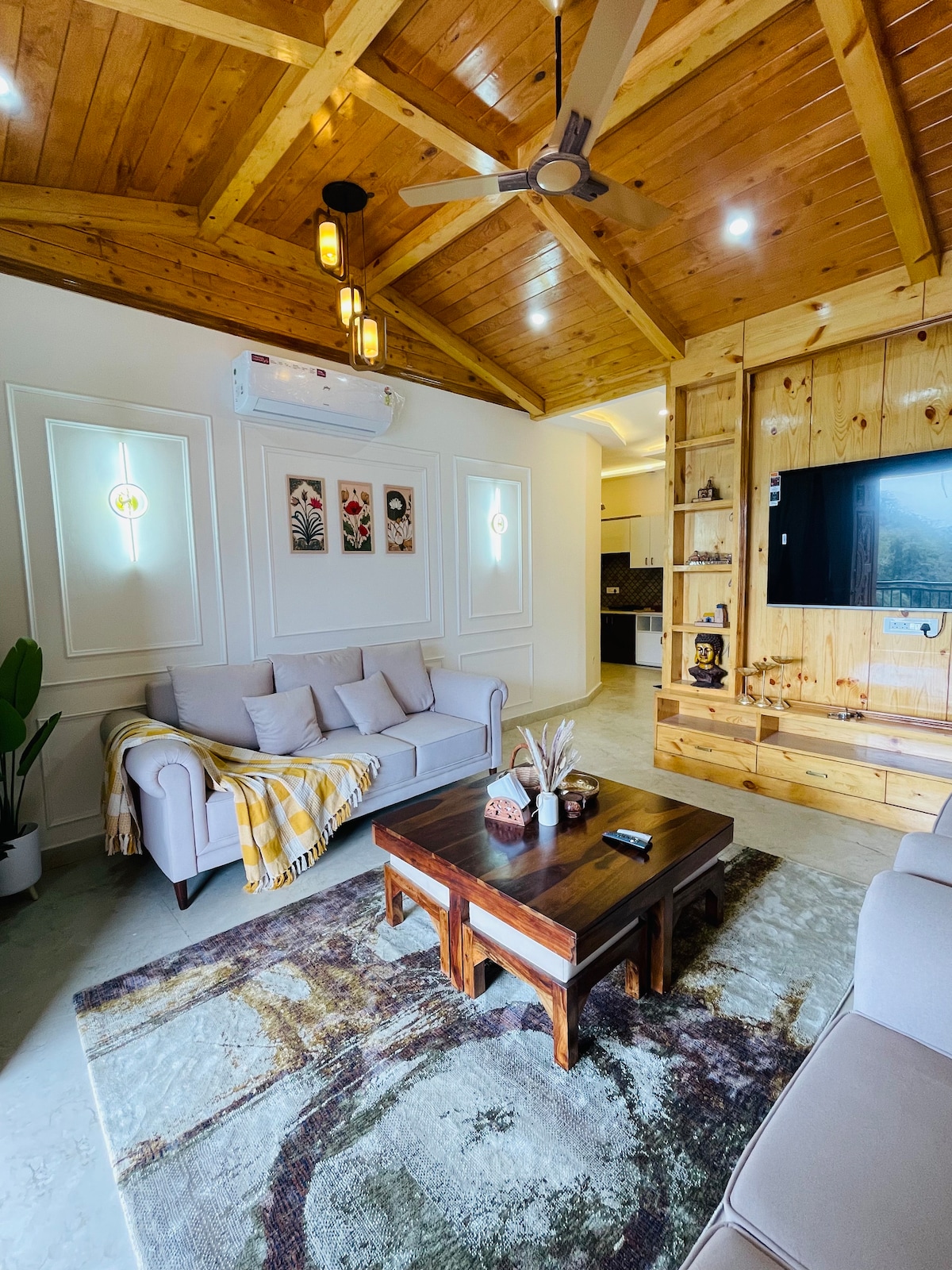 Відпочиньте в нашому спокійному люксі 1-BHK з захоплюючим видом на гори, просторою терасою та сучасними зручностями. Ідеально підходить для сімей і любителів природи з природними стежками, місцями для йоги та місцевими пам 'ятками неподалік. Насолоджуйтеся повністю обладнаною кухнею, спокійною атмосферою та теплою гостинністю. Доступний трансфер з аеропорту (300 ₹, повідомлення за 24 години). Ідеальне поєднання комфорту, шарму та спокою в Гімалаях.