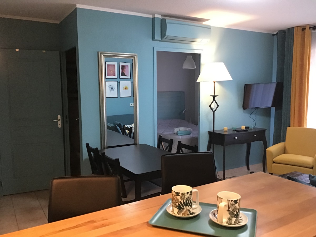 Приємна квартира площею 42 м2 в тихому районі поблизу Узеса, що складається з обладнаної кухні, спальні та душової кімнати в мезоніні. Окрема тераса з барбекю, щоб повністю насолодитися перебуванням. ☀️ Але також є корт для петанк (буанк-корт). Відмінно підходить для літніх вечорів. 😉 Зручно: оптоволоконний, кондиціонер, ролет, кухонний посуд. Біля підніжжя села: торговий центр Carrefour, пекарня, Primeur та музей Haribo для любителів їжі! 🍬