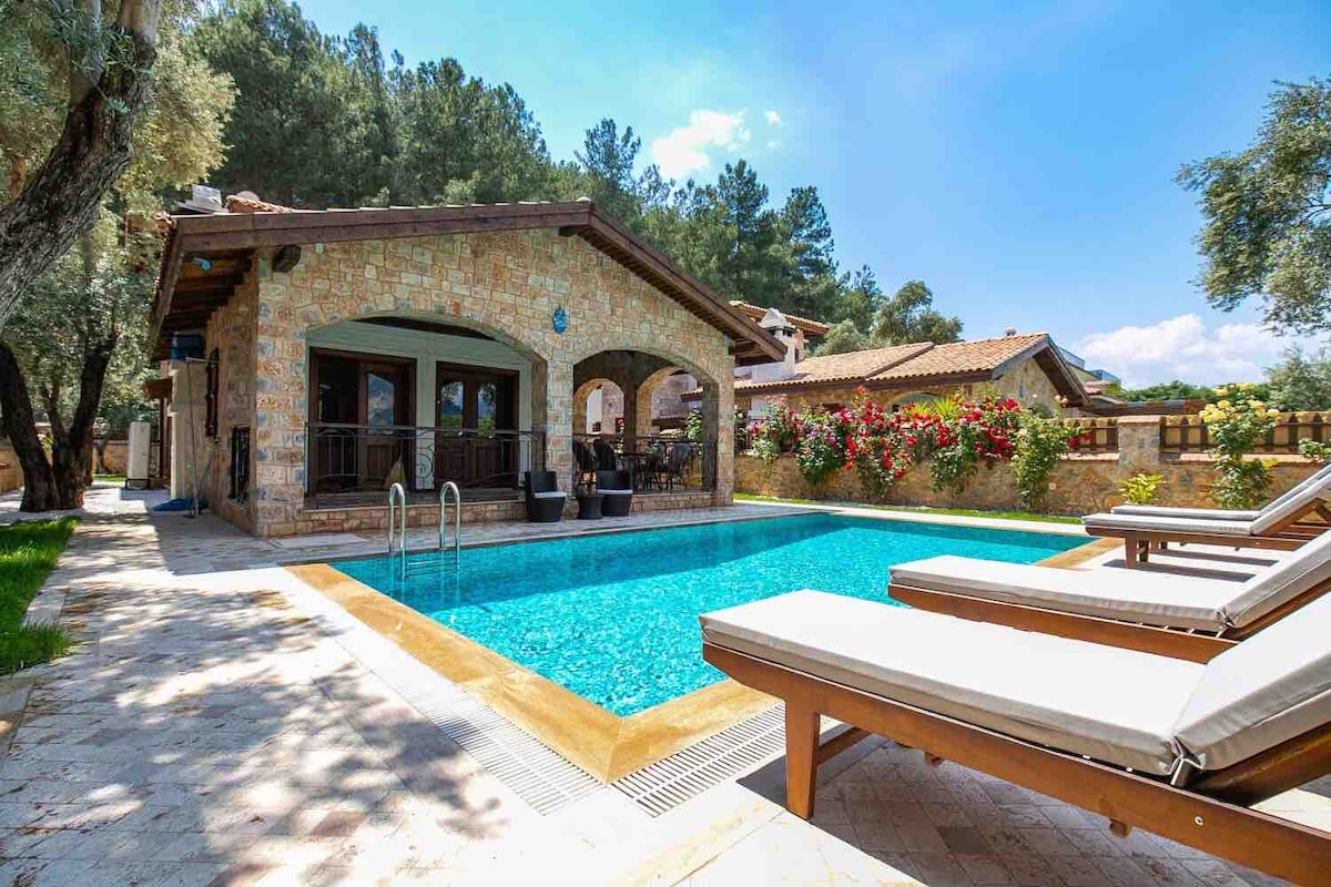 Ви можете відпочити зі своєю сім 'єю на цій мирній віллі з приватним басейном у центрі Єсілюзюмю. Оскільки це бунгало, воно дуже підходить для тих, хто не віддає перевагу сходам. Наш басейн використовується з квітня по жовтень і нагрівається природним чином від сонця. Наша вілла підходить для літнього та зимового розміщення, оскільки в ній є опалення підлоги. Наш регіон, який знаходиться на висоті близько 500 метрів від моря, є найвідомішим регіоном Фетхіє з його лісом і гірським повітрям.