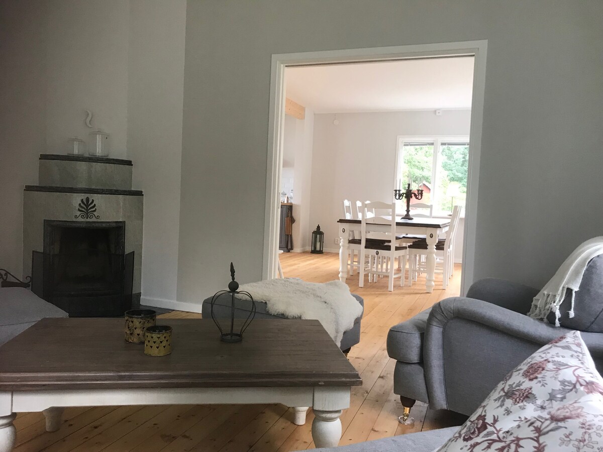 A modern cottage with breathtaking views! Relax on the sunbeds in the garden or on the private beach, enjoy swimming, boat trips or SUP, it is all here! Situated close to nature reserves and yet not far from charming seaside towns with life, culture, designs, museums, restaurants, and cafes. Many attractions, such as Kingdom of Crystal, the Furniture District, Huseby Bruk, Åsnen national park, Linnés Råshult, Ikea Museum, Kalmar Castle to name but a few. Short stays - only - or by agreement