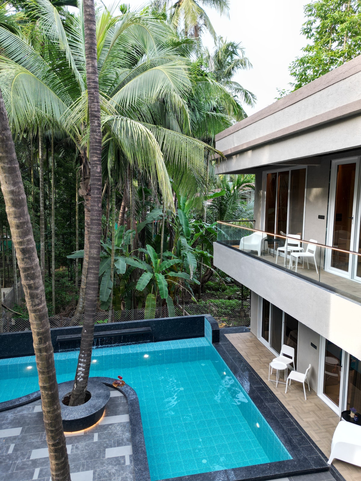 Ласкаво просимо до Waves, спокійного помешкання 1BHK, що пропонує чотири ексклюзивні апартаменти в Талі, Алібауг, кожен з яких призначений для відпочинку. У помешканні є дві квартири на першому поверсі, відомій як нижня палуба, і дві на верхньому поверсі, які називаються Верхньою терасою, з яких відкривається приголомшливий вид на басейн. Розташована всього в 1 км від пляжу Тал, Waves ідеально підходить для пар або невеликих сімей, які шукають спокійного відпочинку, поєднуючи сучасні зручності поблизу узбережжя та відпочинку біля басейну. P.S. Холостяцькі вечірки заборонені