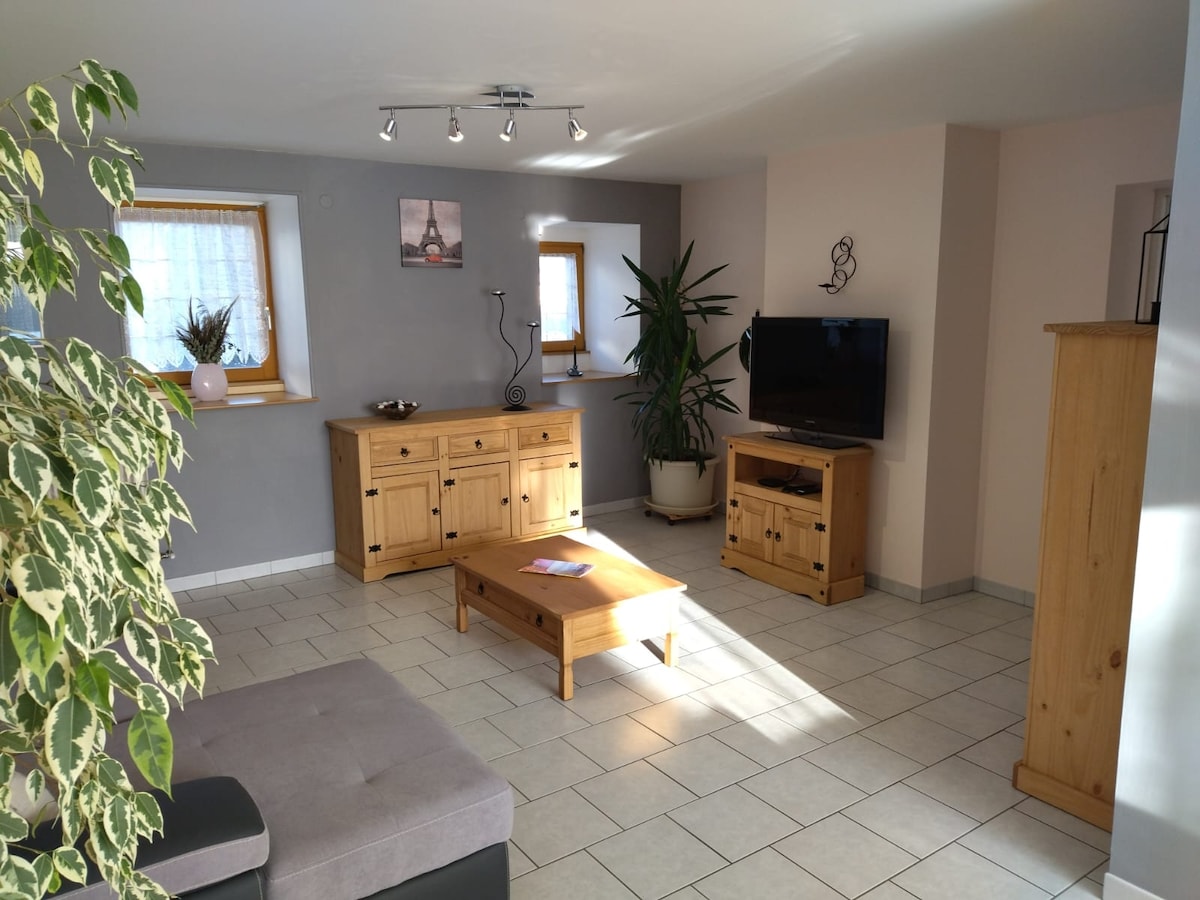 Дуже тиха і затишна квартира на першому поверсі нашого окремого будинку з окремим входом, між містом і сільською місцевістю. 2 км від центру міста Весуль, в підрозділі на краю лісу. Паркувальне місце в 1 метрі від вхідних дверей у приватному подвір 'ї. Зелена доріжка від підрозділу для спокійних прогулянок... Ми готові надати будь-яку іншу інформацію ( французьку, англійську, іспанську)! Ласкаво просимо!