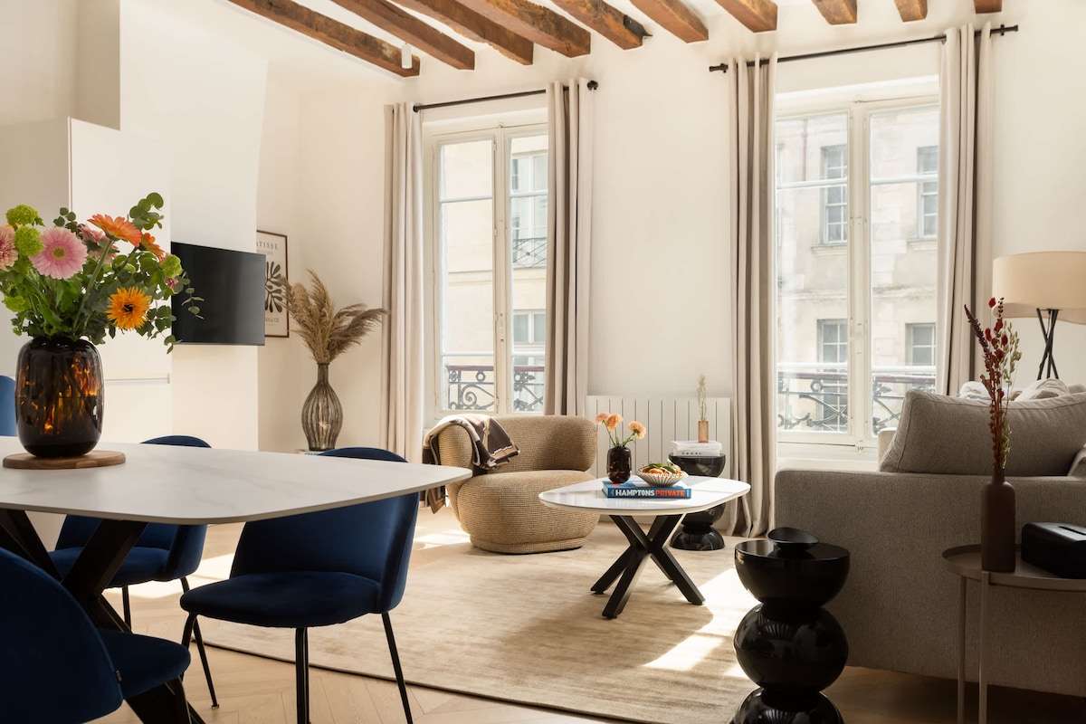 Відкрийте для себе нашу чудову квартиру з 2 спальнями в центрі району Маре, на вулиці Франсуа-Мірон. Справжня паризька атмосфера, помешкання вміщує до 6 гостей, має затишну вітальню, їдальню та повністю обладнану кухню. Це помешкання розташоване всього за кілька кроків від музеїв, ресторанів і культових бутиків, і воно ідеально поєднує в собі паризький шарм із сучасним комфортом для незабутнього перебування.