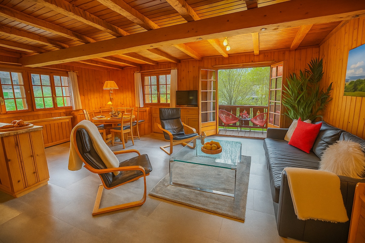 Ця квартира складається з: - Красива вітальня (спальня/вітальня) з 2 кріслами для відпочинку - Обладнана кухня:2 плити, кухонне приладдя, гриль для мікрохвильової печі, чайник, кавоварка,міні-холодильник із морозильною камерою,посуд і столові прибори, набір раклету для 2 осіб - Душова кімната з туалетом - Окремий доступ - паркувальне місце Наявність гаража/кімнати з опаленням для зберігання лиж, черевиків, велосипедів, лижного одягу тощо.