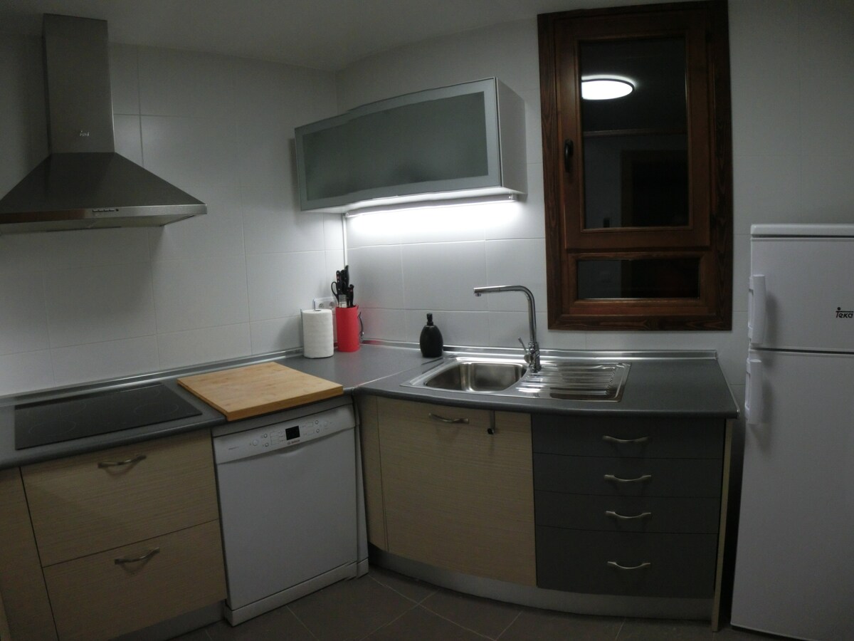 Двоповерхова квартира (праворуч) Безкоштовний WI-FI. Дві спальні (максимум 5 осіб), повна ванна кімната, вітальня з повністю обладнаною міні-кухнею. Постільна білизна, північні продукти та рушники включені. ВРАЖАЮЧІ КРАЄВИДИ. Усі квартири, в яких розділений будинок, мають вільний доступ до приватної тераси - Мірадор помешкання. Паркуйтеся перед будинком. 3 км від В 'єли та 15 км від Бакейри. У нас є дві дуже схожі квартири (Dreta i Esquerra), між ними можуть розміститися на 10 осіб.